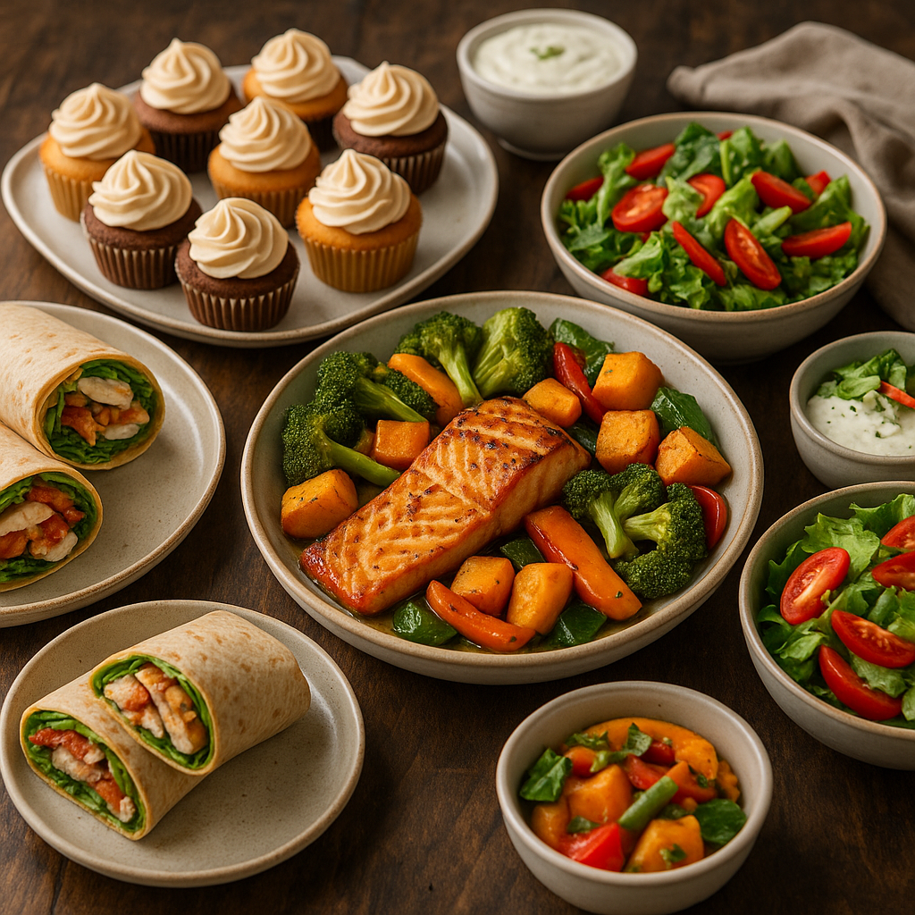 Trays of munchables, wrapables, crunchables, fillables, or diabetic-friendly desserts for meetings, gatherings, or family dinners. Practical, health-conscious options for small groups. Contact store directly to plan your menu and for pricing.