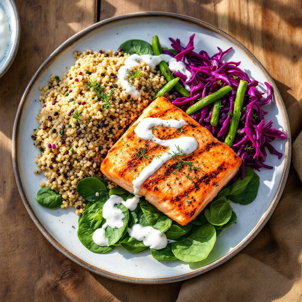 4oz Grilled Salmon drizzled with a house made lemon dill cream sauce, served with broccoli and herbed quinoa. Entree’s come with a side salad, dessert of the day and complimentary infused water.